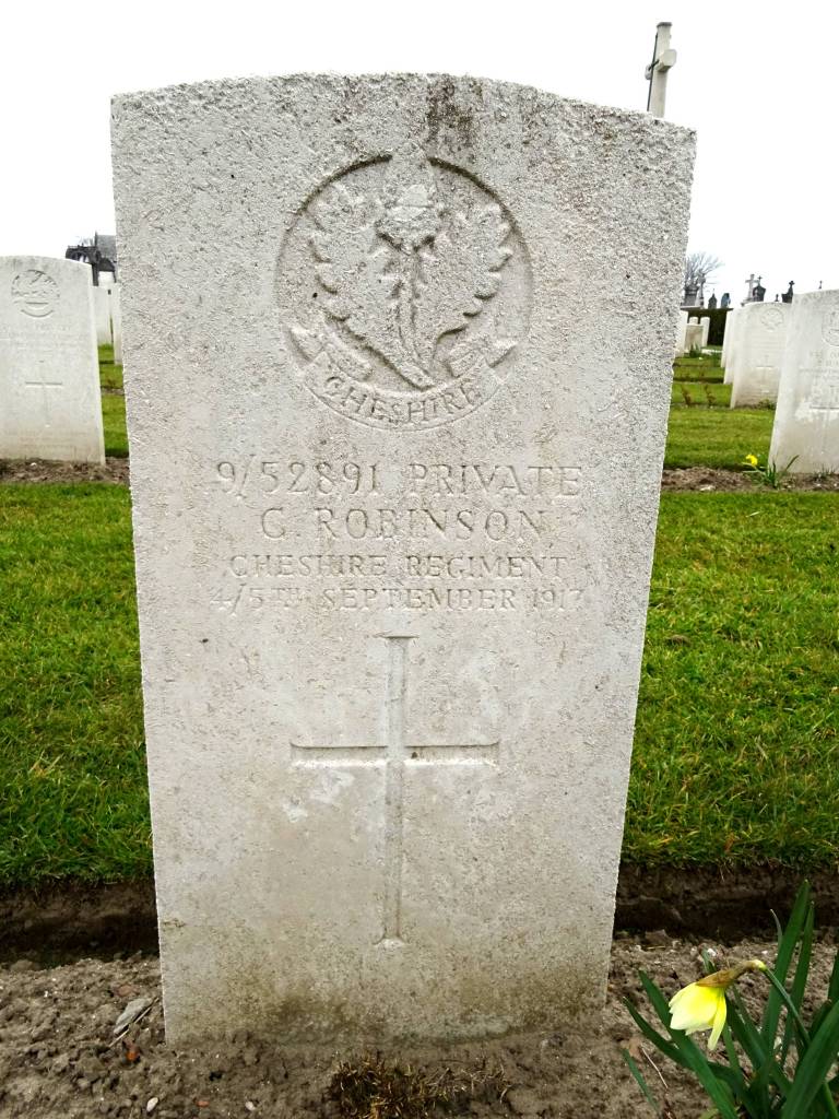 4/09/1917 Private Charles Robinson 9th Bn. Calais Southern Cemetery, Pas de Calais France. ‘9/52891’ (pic from findagrave.com. – with thanks)