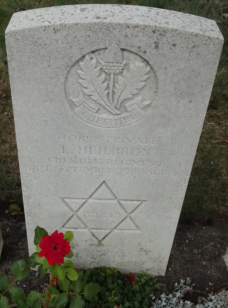 4/09/1918 Private Louis Heilbron (Age 33) 1st/4th Bn. La Clytte Military Cemetery, West-Vlaanderen Belgium. ‘40892’ Son of the late Mr. and Mrs. Simon Heilbron; husband of Lilian May Heilbron, of 2168, Shattuck Avenue, Berkeley, California, U.S.A. Native of Liverpool, England.