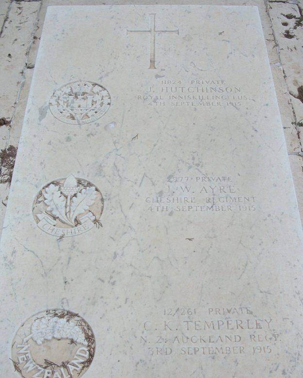 4/09/1915 Private John William Ayre (Age 22) 1st/4th Bn. Pieta Military Cemetery, Malta. ‘2977’ Son of Storey Oliver Ayre, of 160, Argyle St., South Birkenhead. Native of Sunderland. (pic from findagrave.com. – with thanks)