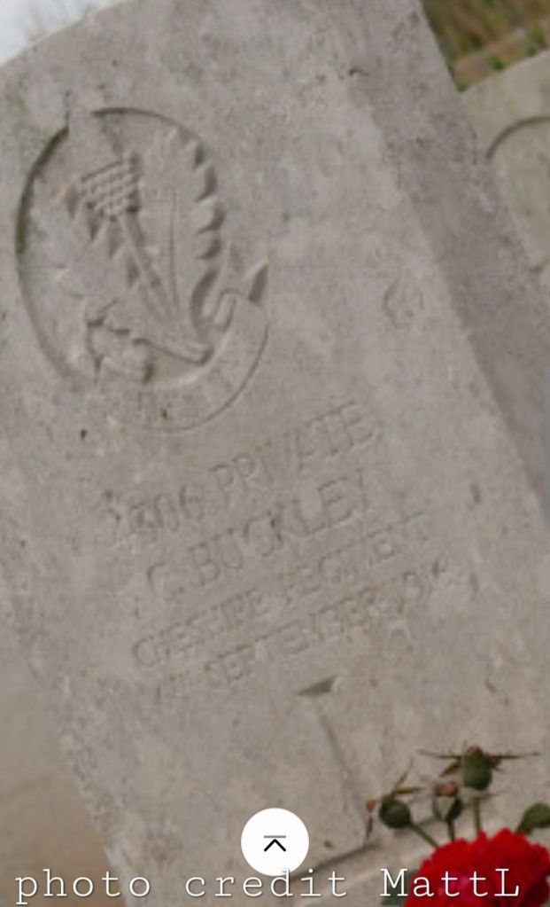 6/09/1916 Private Charles Buckley (Age 20) 11th Bn. Puchevillers British Cemetery, Somme France. ‘4306’ Son of Thomas and Hannah Buckley, of Chester. (pic from findagrave.com. – with thanks, specifically MattL)
