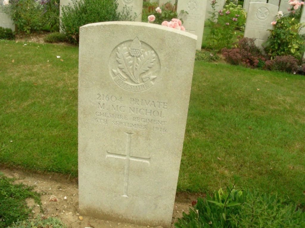 6/09/1916 Private Malcolm McNichol 16th Bn. Faubourg D’amiens Cemetery, Arras, Pas de Calais France. ‘21604’ (pic from findagrave.com. – with thanks)