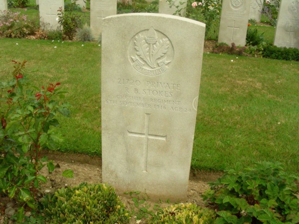 6/09/1916 Private Richard Benjamin Stokes (Age 24) 16th Bn. Faubourg D’amiens Cemetery, Arras, Pas de Calais France. ‘21720’ Son of Mr. and Mrs. Perry, of 44, Beale St., West Bromwich. (pic from findagrave.com. – with thanks)