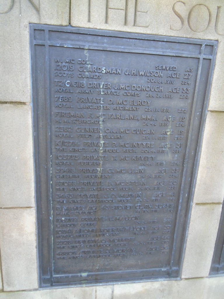 7/09/1917 Private George McLean (Age 35) 19th Bn. Liverpool (Ford) Roman Catholic Cemetery, Lancashire United Kingdom. ‘39418’ Son of Catherine McLean, of 44, Hampton St., Windsor St., Liverpool, and the late Thomas McLean. (pic from findagrave.com. – with thanks)