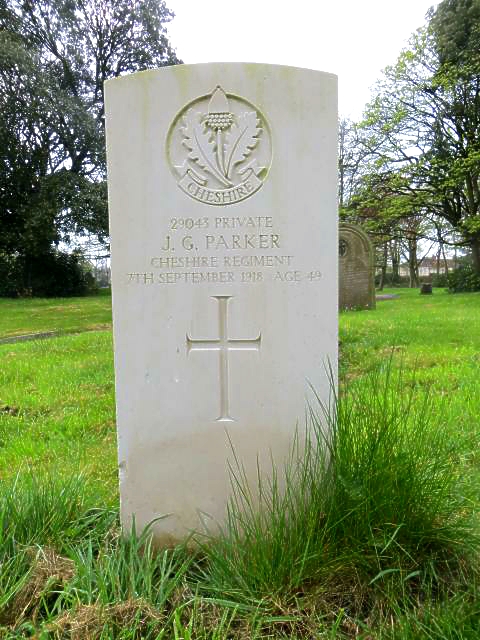 7/09/1918 Private John George Parker (Age 49) Depot, Preston (New Hall Lane) Cemetery, Lancashire United Kingdom. ‘29043’ Husband of Mrs. C. Parker, of 100, Gordon St., Preston. (pic from findagrave.com. – with thanks)