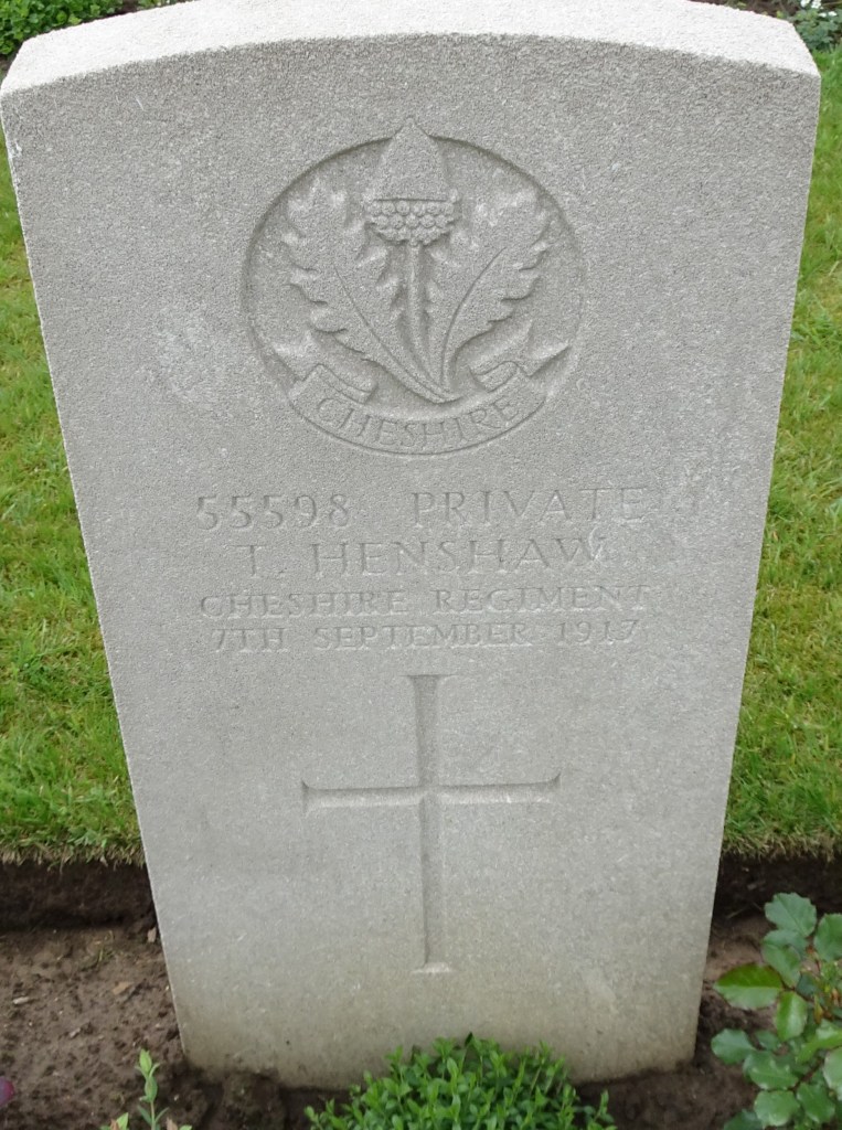 7/09/1917 Private Thomas Henshaw 22nd Labour Bn. Bard Cottage Cemetery, West-Vlaanderen Belgium. ‘55598’