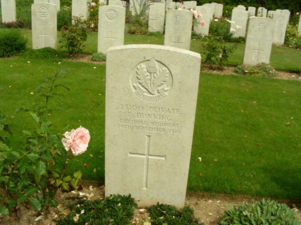 14/09/1916 Private Fred Dunning 15th Bn. Faubourg D’amiens Cemetery, Arras, Pas de Calais France. ‘23100’ (pic from findagrave.com. – with thanks)
