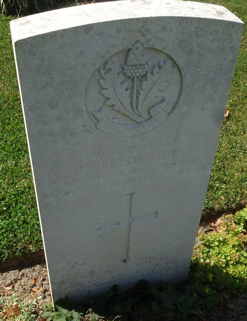 14/09/1917 Private Henry Hoyle Siddle (Age 21) 22nd Bn. Dozinghem Military Cemetery, West-Vlaanderen Belgium. ‘41154’ Son of George and Alice Hannah Siddle, of 29, Edward St., Rochdale.