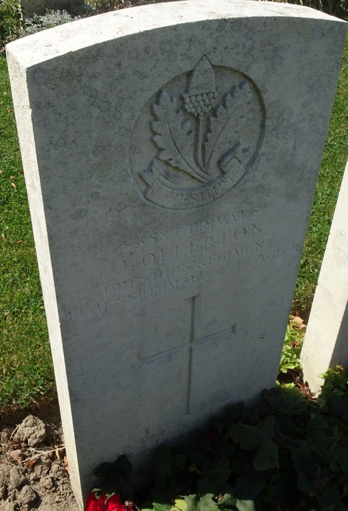 14/09/1917 Private James Ollerton (Age 41) 22nd Bn. Dozinghem Military Cemetery, West-Vlaanderen Belgium. ‘55587’ Son of Margaret Ollerton, of Lathom; husband of May Ollerton, of 57, Square Lane, Lathom, Ormskirk.