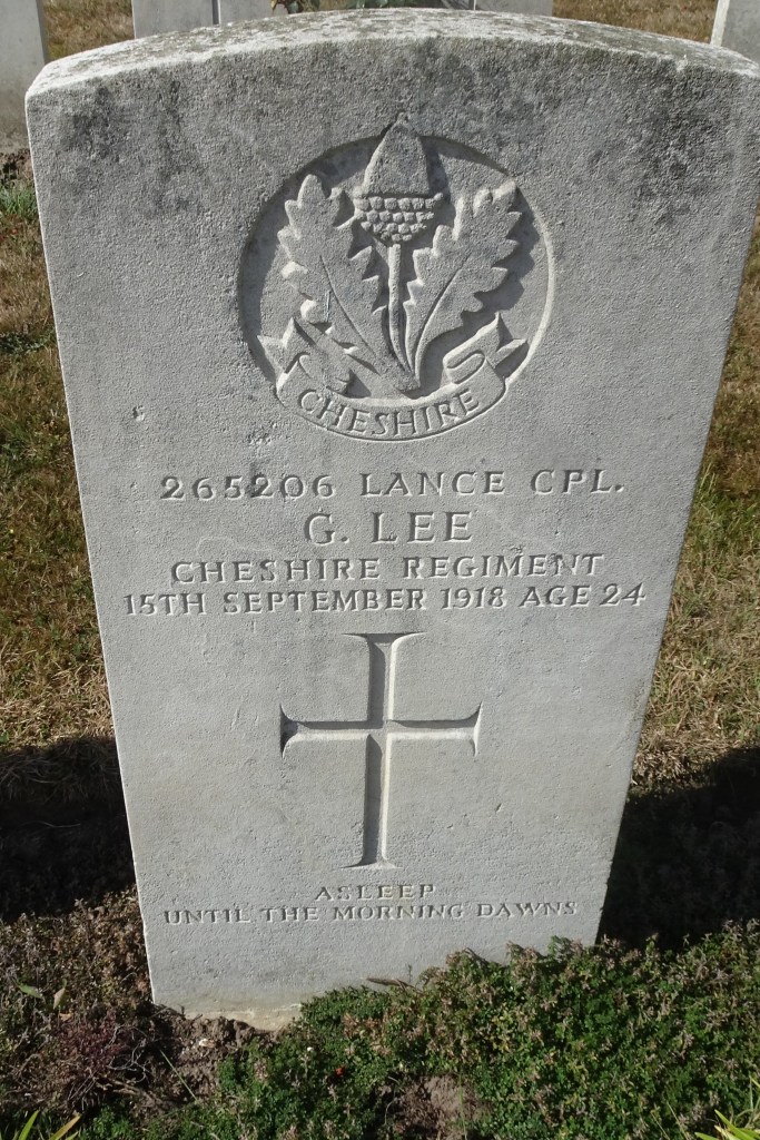 15/09/1918 Lance Corporal George Lee (Age 24) 1st/6th Bn. Westoutre British Cemetery, West-Vlaanderen Belgium. ‘265206’