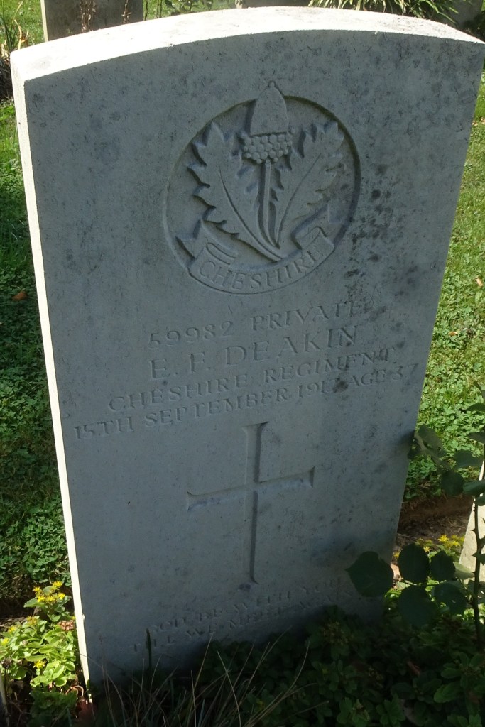 15/09/1917 Private Edward Francis Deakin (Age 37) 2nd Labour Bn. Dozinghem Military Cemetery, West-Vlaanderen Belgium. ‘59982’ Son of Eliza Mason (formerly Deakin), of 14, Vincent Terrace, Colebrook Row, Islington, London, and the late Edward James Deakin; husband of Alice Deakin.
