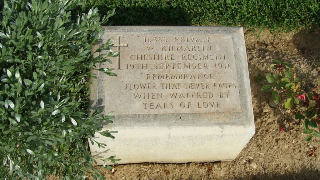 19/09/1916 Private William Kilmartin (Age 23) 12th Bn. Karasouli Military Cemetery, Greece. ‘16386’ Brother of Mrs. Langley, of 3, Withens Row, Great Portwood St., Stockport. (pic from findagrave.com. – with thanks)
