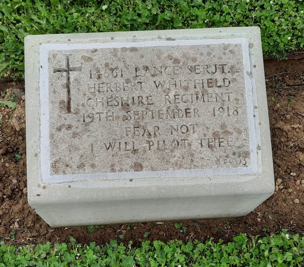 19/09/1918 Lance Serjeant Herbert Whitfield (Age 27) MID 12th Bn. Sarigol Military Cemetery, Kriston, Greece. ‘14561’ Son of Sarah Elizabeth Robinson (formerly Whitfield), of 5, Barmboro St., Denaby Main, Rotherham, Yorks, and the late Peter Whitfield. Born at Sutton, St. Helens, Lancs. (pic from findagrave.com. – with thanks)