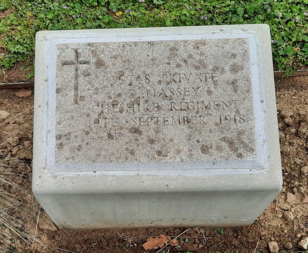 19/09/1918 Private Dan Massey 12th Bn. Sarigol Military Cemetery, Kriston, Greece. ‘35748’ (pic from findagrave.com. – with thanks)