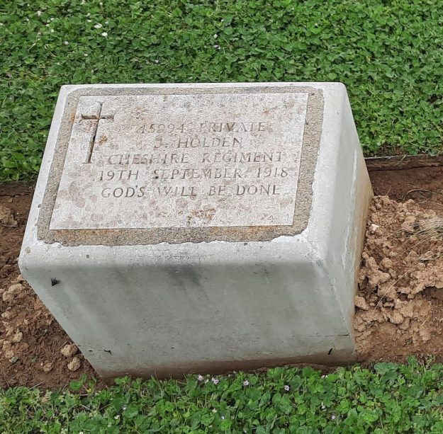 19/09/1918 Private James Holden (Age 21) “D” Coy. 12th Bn. Sarigol Military Cemetery, Kriston, Greece. ‘45994’ Son of John Henry and Sarah Holden, of Liscard, Wallasey, Cheshire. (pic from findagrave.com. – with thanks)