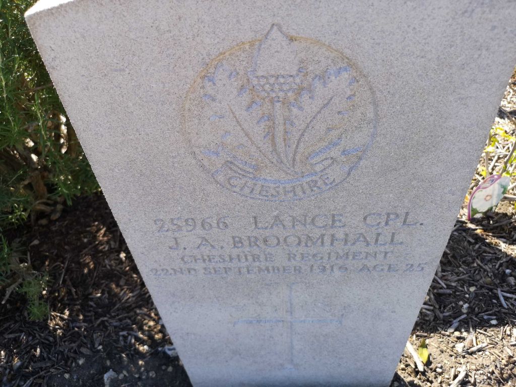 22/09/1916 Lance Corporal John Alfred Broomhall (Age 25) 1st Bn. St. Sever Cemetery, Rouen, Seine-Maritime France. ‘25966’ Son of Mr. and Mrs. J. Broomhall, of 72, Pounting St., Wolverhampton. (pic from findagrave.com. – with thanks)