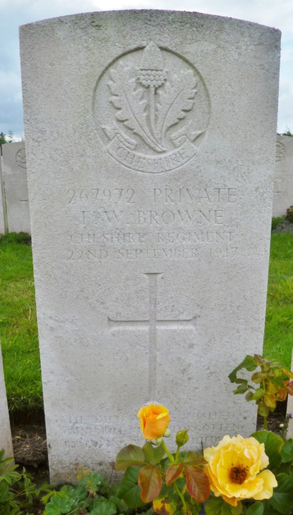 22/09/1917 Private Frderick William Browne 6th Bn. Godewaersvelde British Cemetery, Nord France. ‘267972’ (pic from findagrave.com. – with thanks)