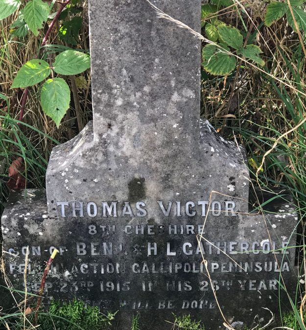 23/09/1915 Private Thomas Gathercole (Age 25) 8th Bn. Azmak Cemetery, Suvla, Turkey (including Gallipoli). ‘11415’ Son of Benjamin and H. L. Gathercole, of Rostherne, Knutsford. (pic from findagrave.com. – with thanks)