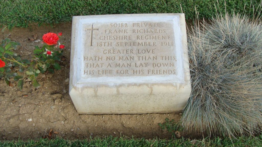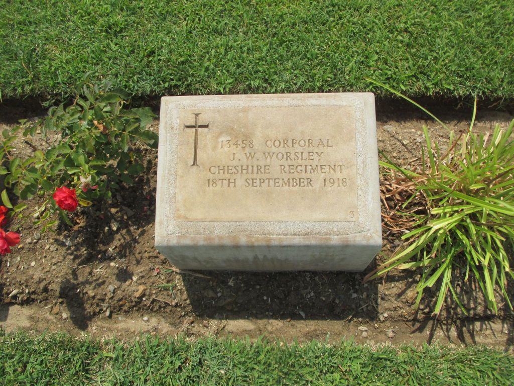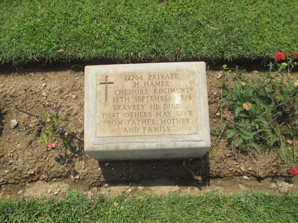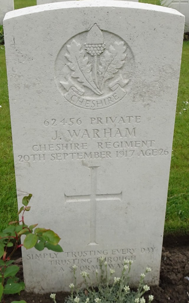 20/09/1917 Private Joseph Warham (Age 26) 1st/6th Bn. Bedford House Cemetery, West-Vlaanderen Belgium. ‘62456’ Son of George and Mary Ellen Warham, of Warburton, Cheshire; husband of Amelia Dale Warham, of 29, Lloyd St., Altrincham, Cheshire.