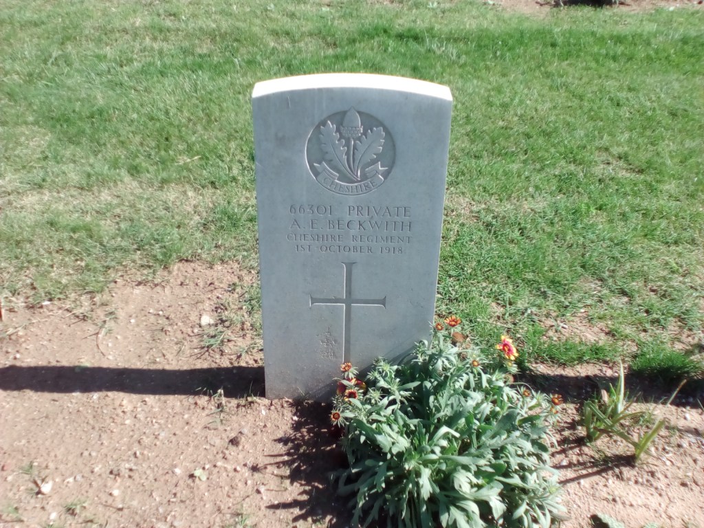 1/10/1918 Private Albert Edwin Beckwith 2nd Bn. Kirechkoi-Hortakoi Military Cemetery, Greece. ‘66301’ (pic from findagrave.com. – with thanks)