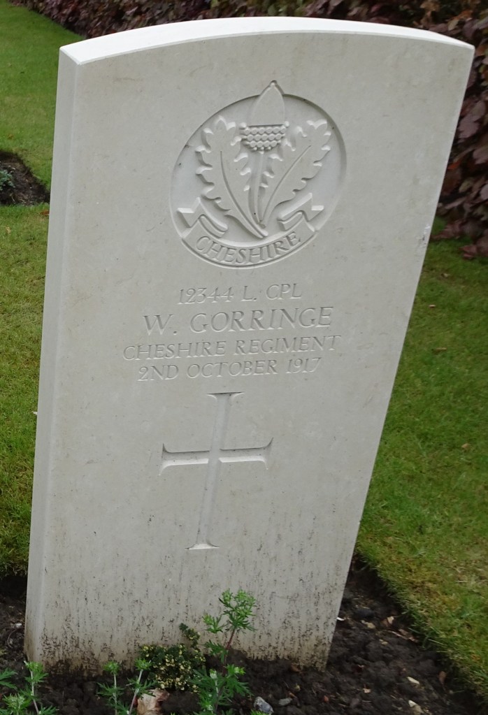 2/10/1917 Lance Corporal Walter Gorringe 9th Bn. Oxford Road Cemetery, West-Vlaanderen Belgium. ‘12344’