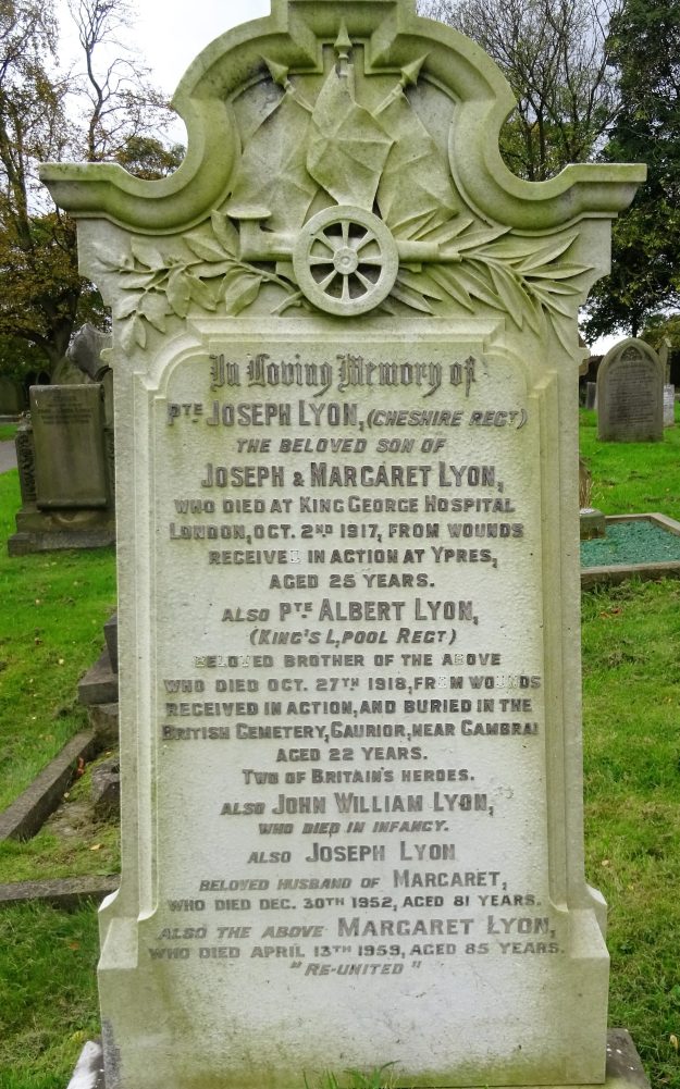 2/10/1917 Private Joseph Lyon 13th Bn. Runcorn Cemetery, Cheshire United Kingdom. ‘14993’ (pic from findagrave.com – with thanks)