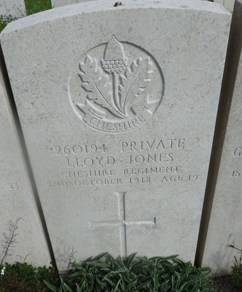 2/10/1918 Private Lloyd Jones (Age 19) 15th Bn. Lijssenthoek Military Cemetery, West-Vlaanderen Belgium. ‘260194’ Son of Thomas and Hannah Jones, of 2, Bryn Rd. South, Ashton-in-Makerfield, Lancs.
