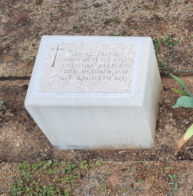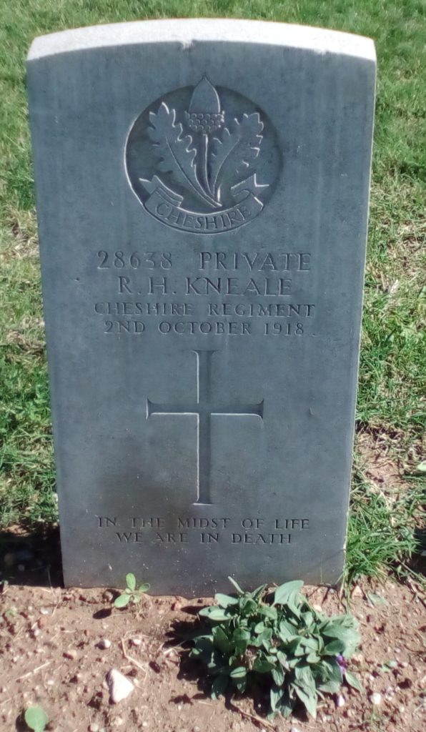 2/10/1918 Private Robert Henry Kneale 12th Bn. Kirechkoi-Hortakoi Military Cemetery, Greece. ‘28638’ Husband of Catherine Kneale, of 18, Head Rd., Douglas, Isle of Man. (pic from findagrave.com. – with thanks)