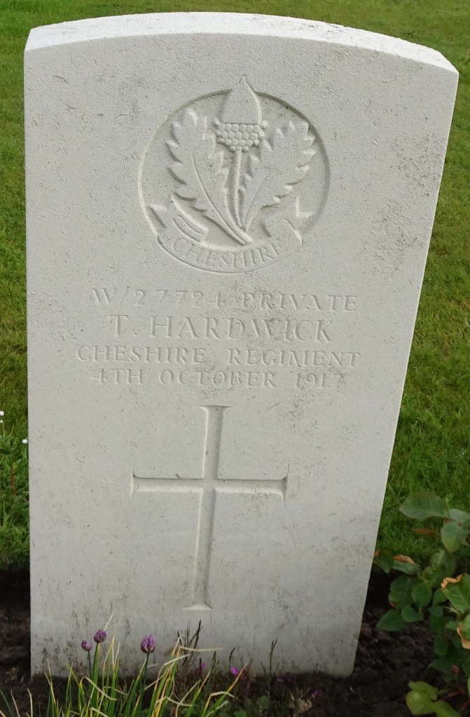 4/10/1917 Private Thomas Hardwick 1st Bn. Bedford House Cemetery, West-Vlaanderen Belgium. ‘W/27724’