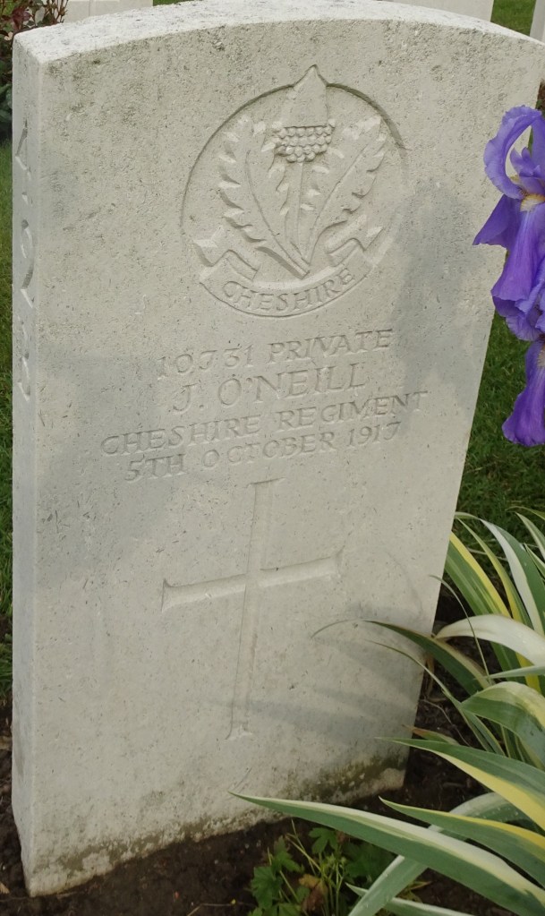 05/10/1917 Private James O’Neill 1st Bn. Tyne Cot Cemetery, West-Vlaanderen Belgium. ‘10731’