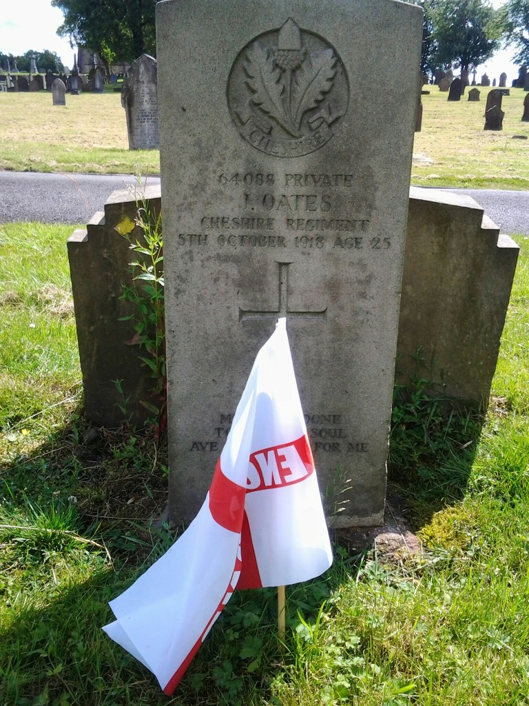 05/10/1918 Private John Oates (Age 25) Depot Heywood Cemetery, Lancashire, Lancashire United Kingdom. ‘64088’ Son of Martin and Julia Oates, of 5, Hilton St., Heywood. (pic from findagrave.com. – with thanks)