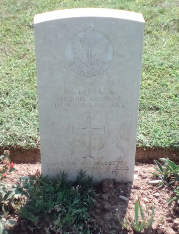7/10/1918 Corporal William Littler (Age 27) 12th Bn. Mikra British Cemetery, Kalamaria, Greece. ‘13607’ Son of Mrs. Annie Littler, of 141, Garden Lane, Chester. (pic from findagrave.com. – with thanks)