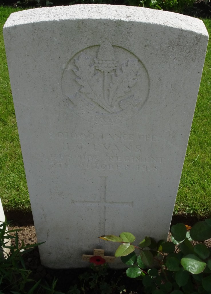7/10/1918 Lance Corporal John Thomas Evans 1st/4th Bn. Menin Road South Military Cemetery, West-Vlaanderen Belgium. ‘201000’
