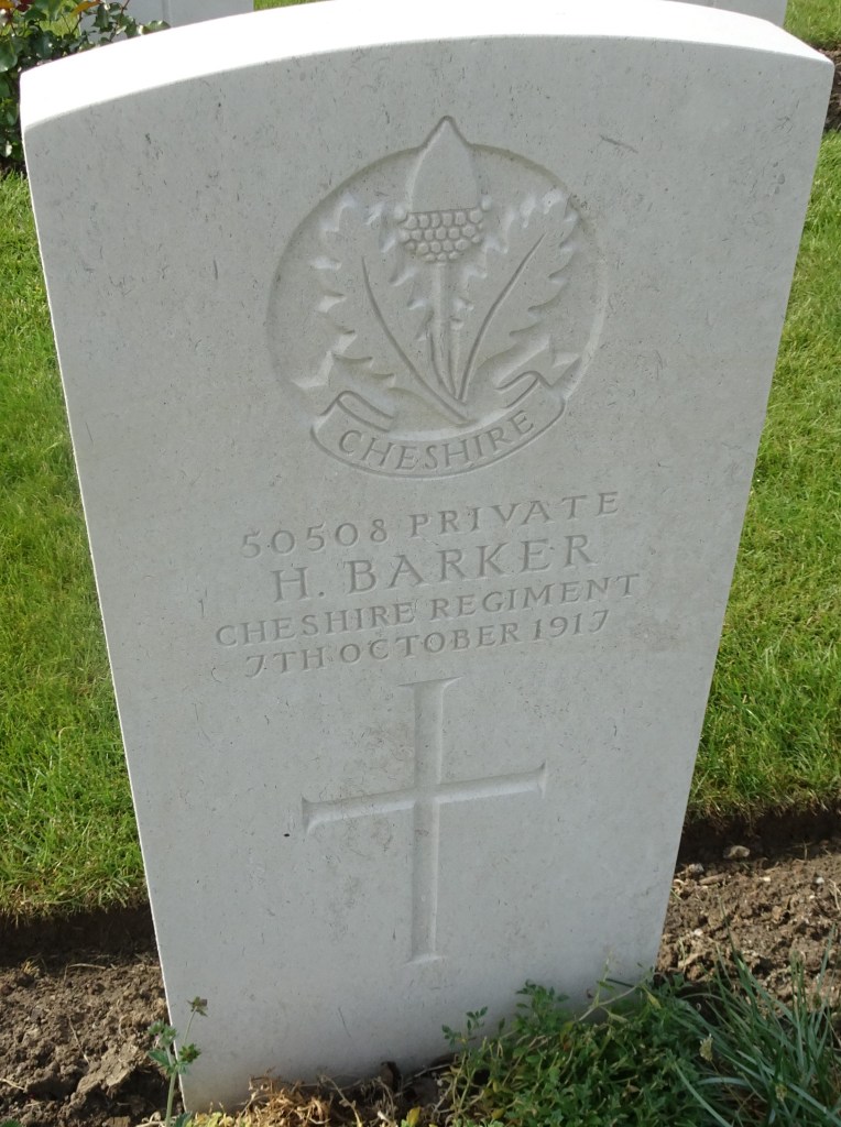 7/10/1917 Private Harry Barker (Age 36) 1st Bn. Tyne Cot Cemetery, West-Vlaanderen Belgium. ‘50508’ Husband of Mrs. L. Barker, of 404, Manchester Rd., Bolton.