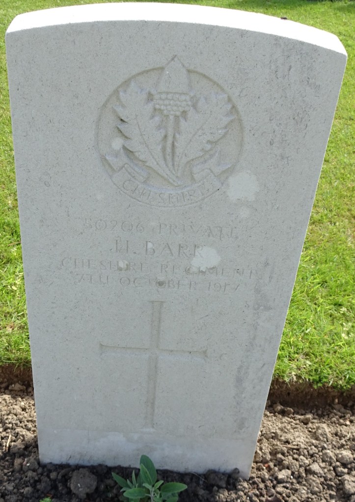 7/10/1917 Private Herbert Barr 9th Bn. Spoilbank Cemetery, West-Vlaanderen Belgium. ‘50206’