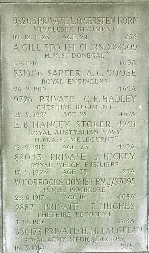 7/10/1918 Private Thomas Hughes 540th Coy. Birkenhead (Flaybrick Hill) Cemetery, Cheshire United Kingdom. ‘2887’ (pic from findagrave.com. – with thanks)