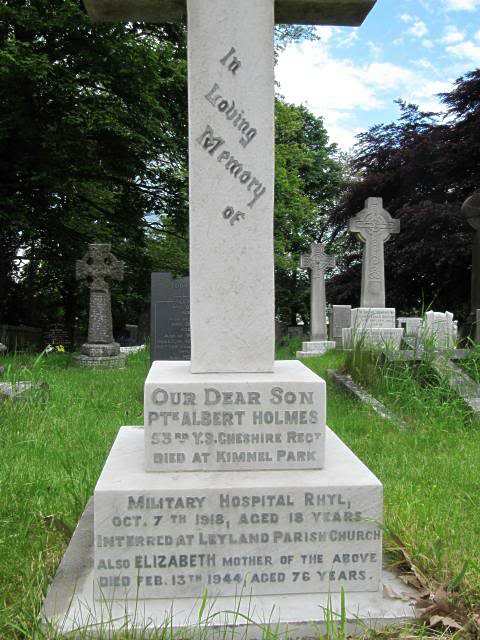 8/10/1918 Private Albert Holmes (Age 18) 53rd Training Reserve Bn. Leyland (St. Andrew) Churchyard, Lancashire United Kingdom. ‘55446’ Son of Robert and Elizabeth Holmes, of 23, Bow Lane, Ley]and. (pic from findagrave.com. – with thanks)