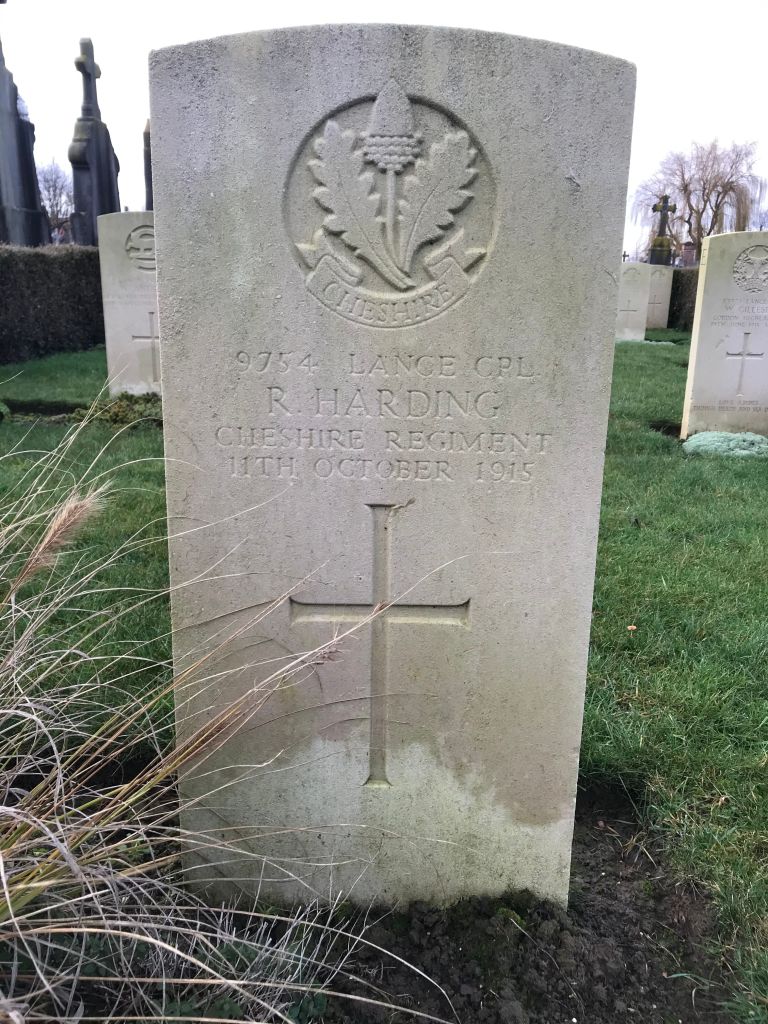 11/10/1915 Lance Corporal Richard Harding 2nd Bn. Phalempin Communal Cemetery, Nord France. ‘9754’ (pic from findagrave.com. – with thanks)