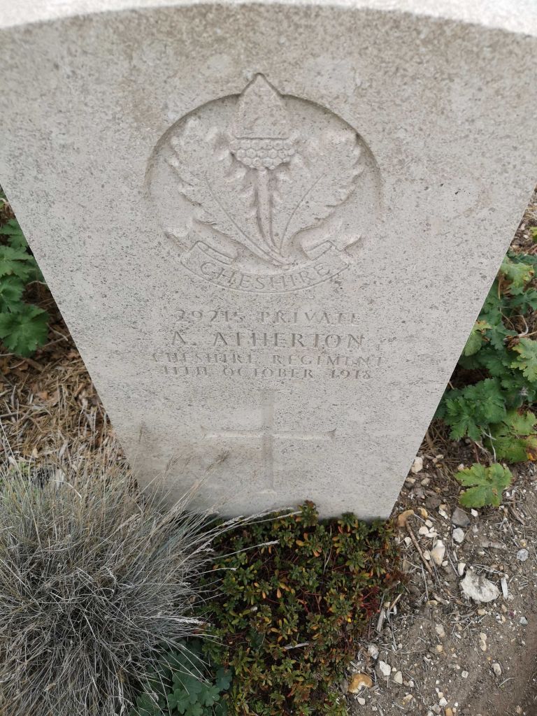 11/10/1918 Private Alfred Atherton 13th Bn. St. Sever Cemetery Extension, Rouen, Seine-Maritime France. ‘29215’ (pic from findagrave.com. – with thanks)