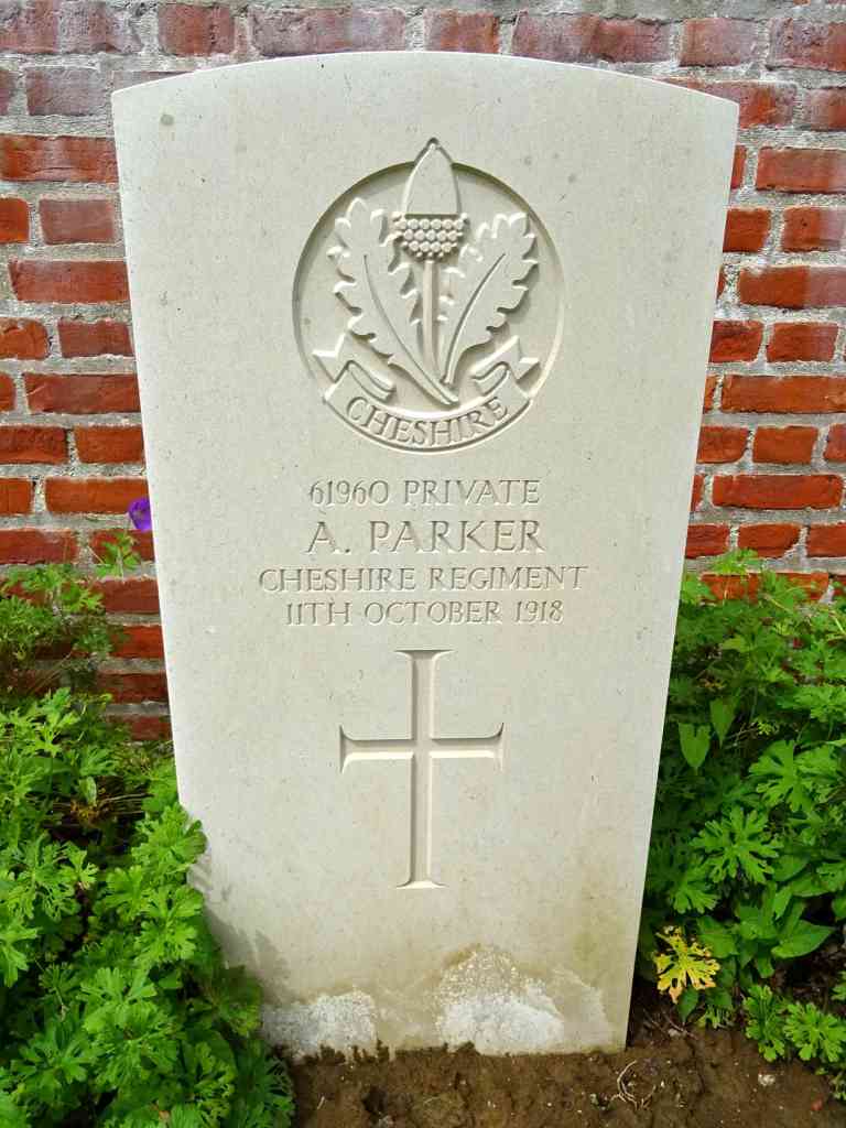 11/10/1918 Private Albert Parker 15th Bn. Cross Roads Cemetery, Fontaine-Au-Bois, Nord France. ‘61960’ (pic from findagrave.com. – with thanks)