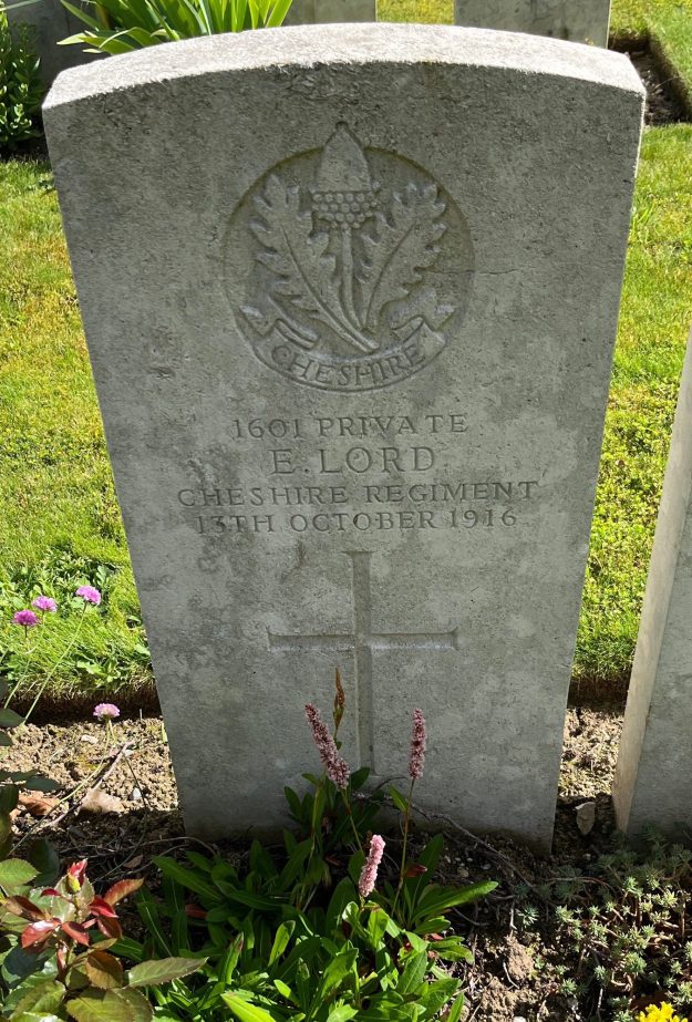 13/10/1916 Private Edward Lord 6th Bn. Mesnil Communal Cemetery Extension, Somme France. ‘1601’ (pic from findagrave.com. – with thanks)