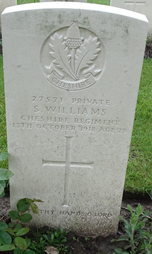 13/10/1918 Private Samuel Williams (Age 28) 15th Bn. Ypres Reservoir Cemetery, West-Vlaanderen Belgium. ‘27571’ Son of Samuel and Ellen Williams; husband of Mary Ann Williams, of 29, Kent St., Fenton, Stoke-on-Trent.