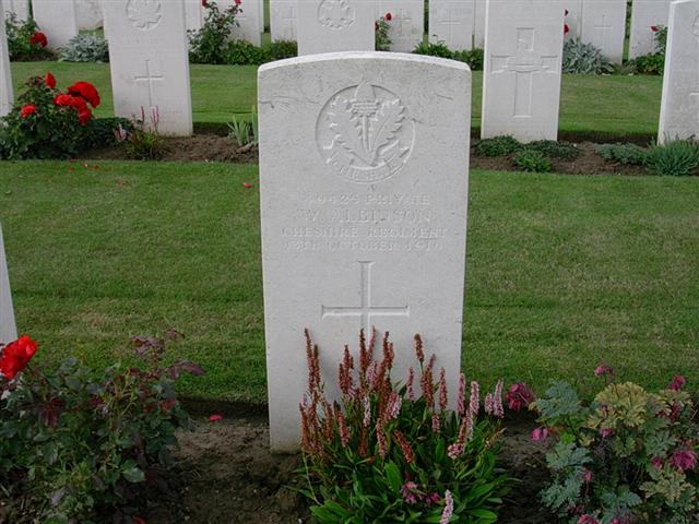 13/10/1916 Private William Albinson 10th Bn. Warloy-Baillon Communal Cemetery Extension, Somme France. ‘49425’ (pic from findagrave.com. – with thanks)