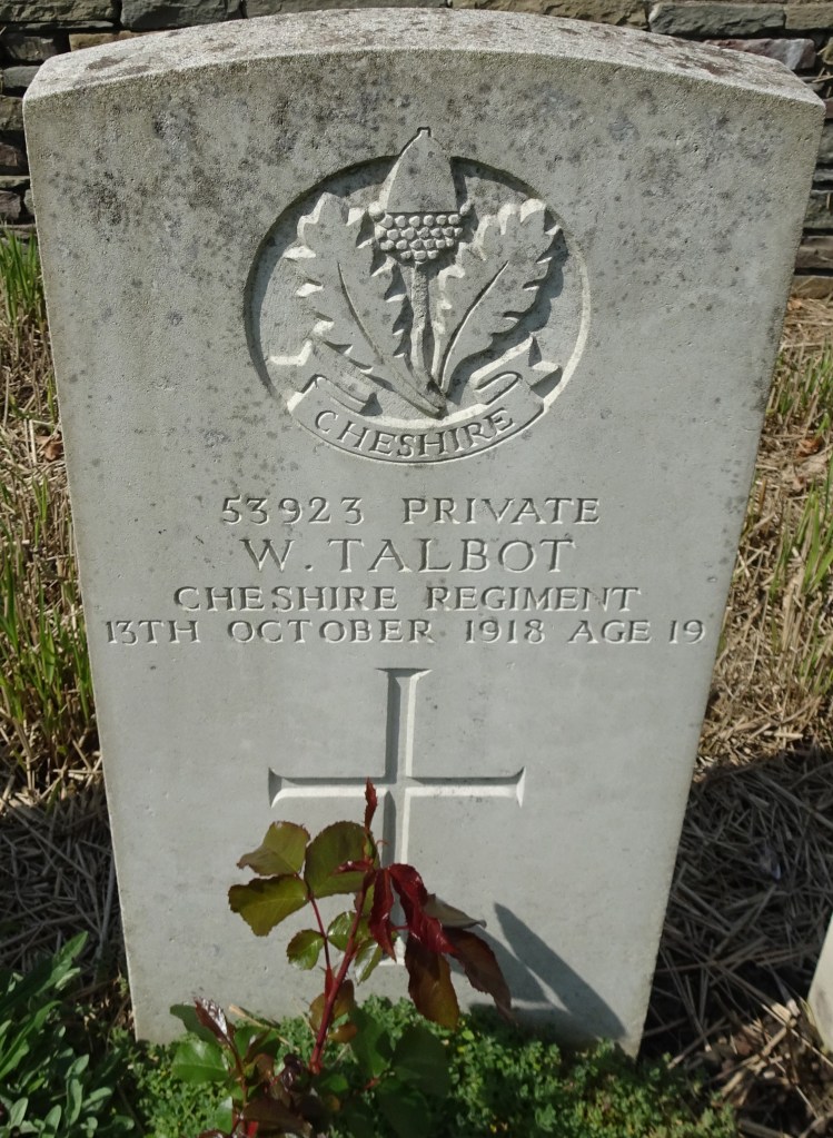 13/10/1918 Private Walter Talbot (Age 19) 15th Bn. Dadizeele New British Cemetery, West-Vlaanderen Belgium. ‘53923’ Son of Walter and Catherine Talbot, of 6, Pleasant View, Little Harwood, Blackburn.