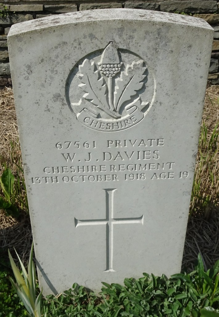 13/10/1918 Private William John Davies (Age 19) 15th Bn. Dadizeele New British Cemetery, West-Vlaanderen Belgium. ‘67561’ Adopted son of Robert and Amelia Roberts, of Felin Cadeg, Leansannan, Abergele, Denbighshire.