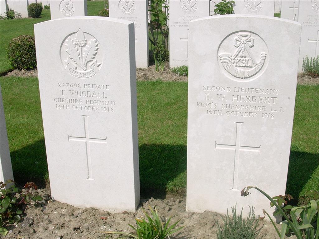 16/10/1918 Second Lieutenant Edmund Widdington Herbert 4th Bn. Attached from King’s Shropshire Light Infantry. Hooge Crater Cemetery, West-Vlaanderen Belgium.