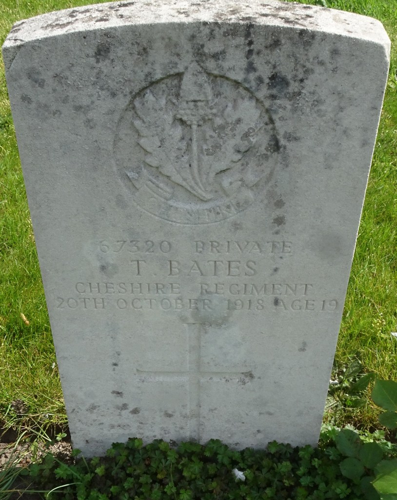 20/10/1918 Private Thomas Bates (Age 19) 15th Bn. Harlebeke New British Cemetery, West-Vlaanderen Belgium. ‘67320’