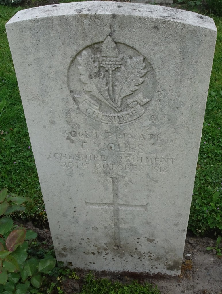 20/10/1918 Private Charles Coles 1st/6th Bn. Harlebeke New British Cemetery, West-Vlaanderen Belgium. ‘50684’
