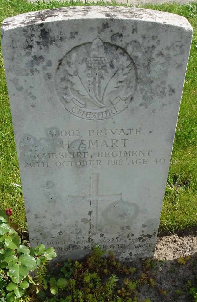 20/10/1918 Private Herbert Smart (Age 40) 15th Bn. Harlebeke New British Cemetery, West-Vlaanderen Belgium. ‘58002’ Son of Samuel and Alice Smart, of Northampton; husband of Mary Ann Smart, of 160, Semilong Rd., Northampton.