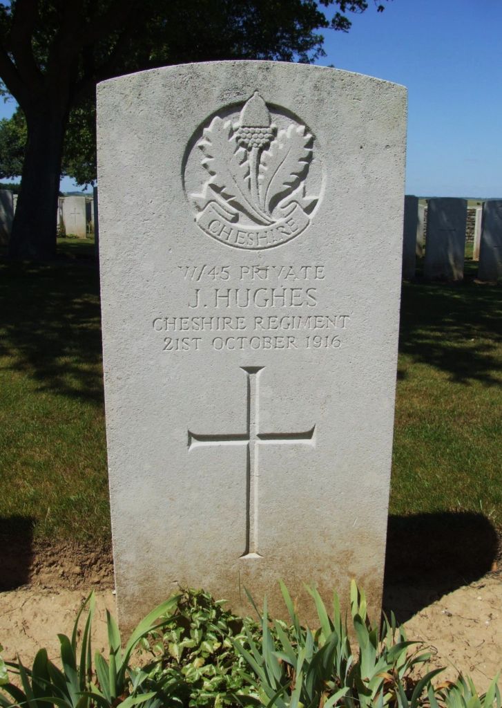 21/10/1916 Private James Hughes 13th Bn. Regina Trench Cemetery, Grandcourt, Somme France. ‘W/45’ (pic from findagrave.com – with thanks)