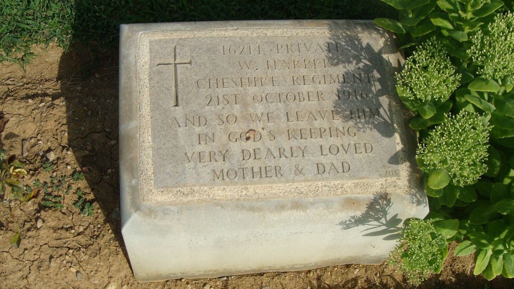 21/10/1916 Private Walter Harper (Age 18) 12th Bn. Karasouli Military Cemetery, Greece. ‘16214’ Son of Herbert William and Ellen Harper, of 138, Old Rd., Heaton Norris, Stockport. (pic from findagrave.com – with thanks)